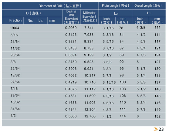 鉆頭系列ANSI B94.11M